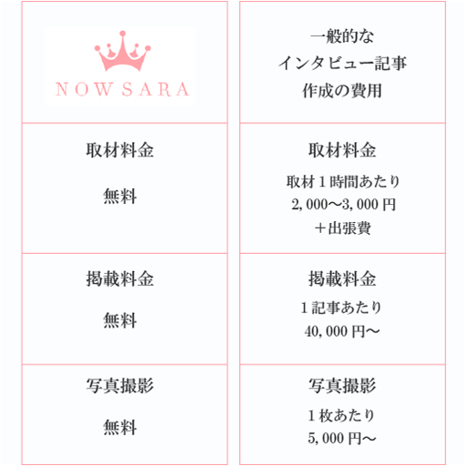 そのため、取材料や掲載料などを一切いただかずに女性の宣伝活動をしております。