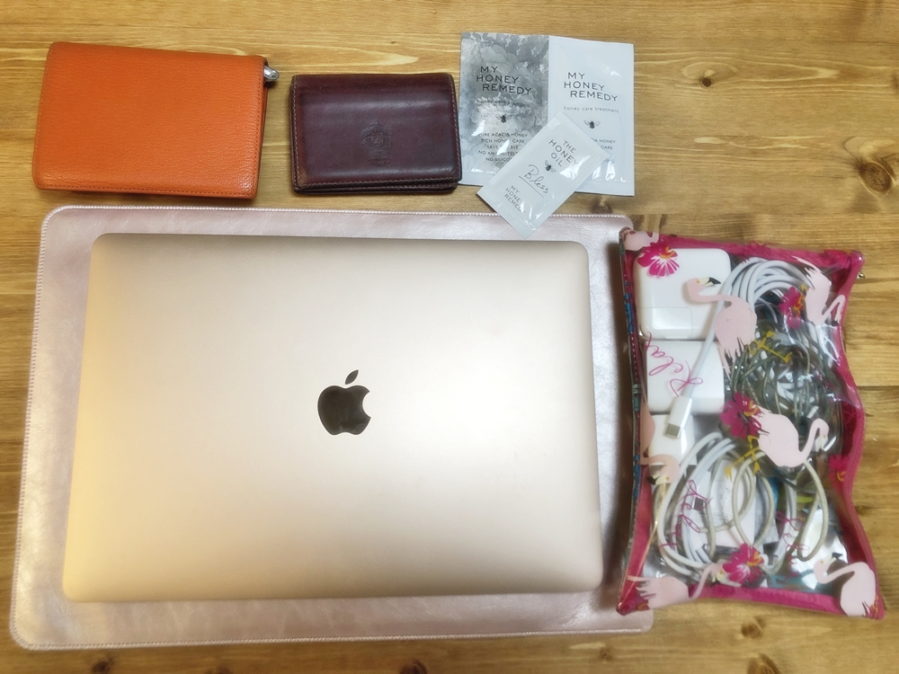 手帳です。パッと思いついたことなど、何でもメモするようにしています。他には名刺入れやパソコン、PRを担当している商品など。下記の写真を参考にしてください。