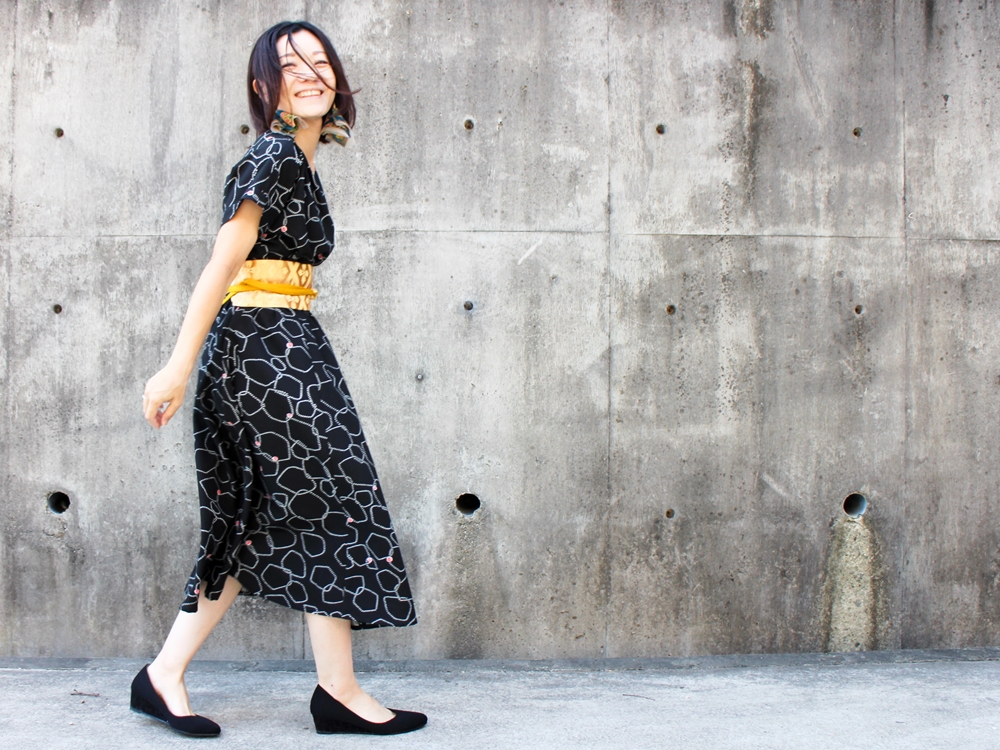 編み物が得意で着付け師である母、家具職人であり日曜大工もする父、洋裁が趣味である和菓子屋の祖母、自身で仕立てた着物を纏う日本舞踊家の祖母。ものづくりと着物が身近にある環境で育ちました。