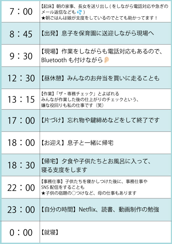 仕事内容によって変わりますが、大体、下記のようなスケジュールで活動しています。