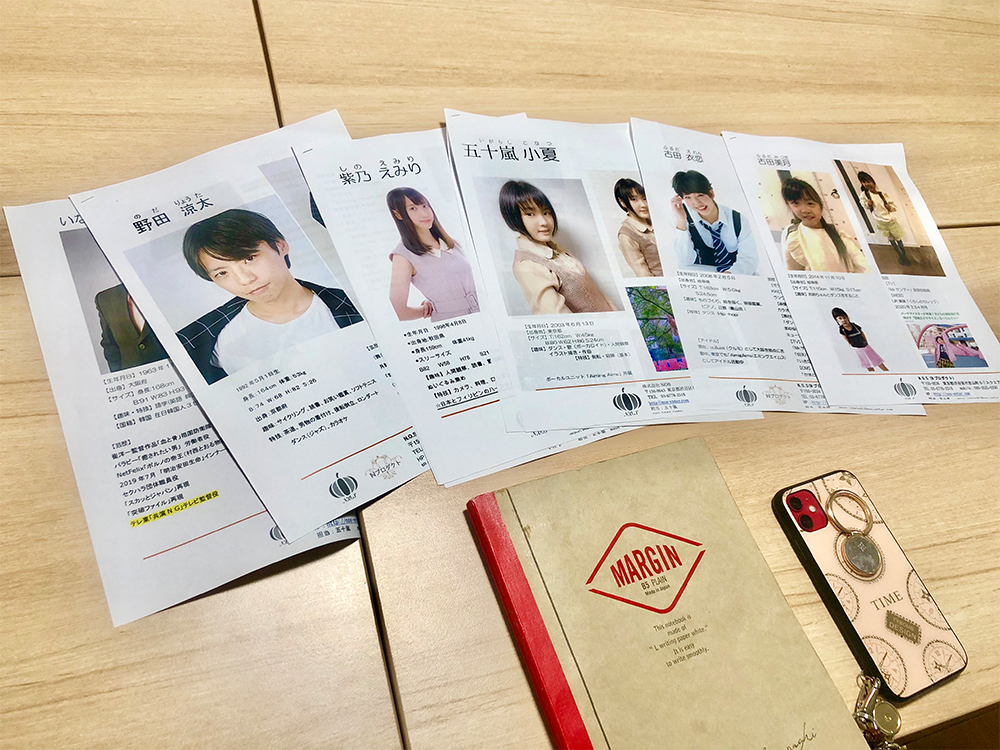 タレントのプロフィール用紙をいつも持ち歩いています。