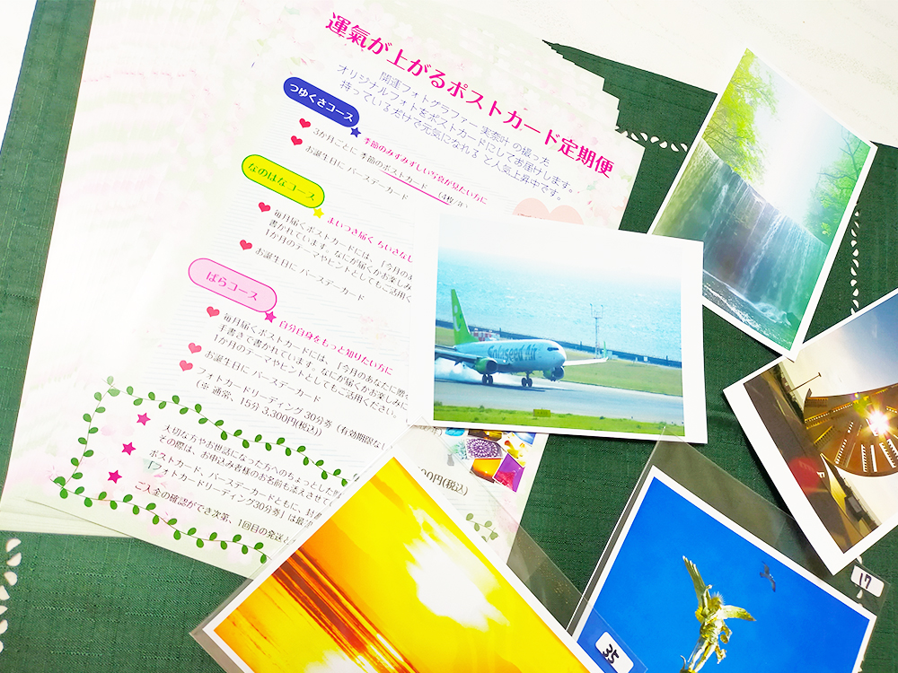 「フォトカードリーディング」による個人セッションと、「運氣が上がるポストカード定期便」がメインの活動。