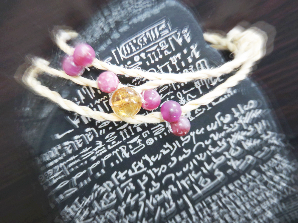 精麻(古来、神社のしめ縄などに使われている浄化力の強い麻)やパワーストーンで、