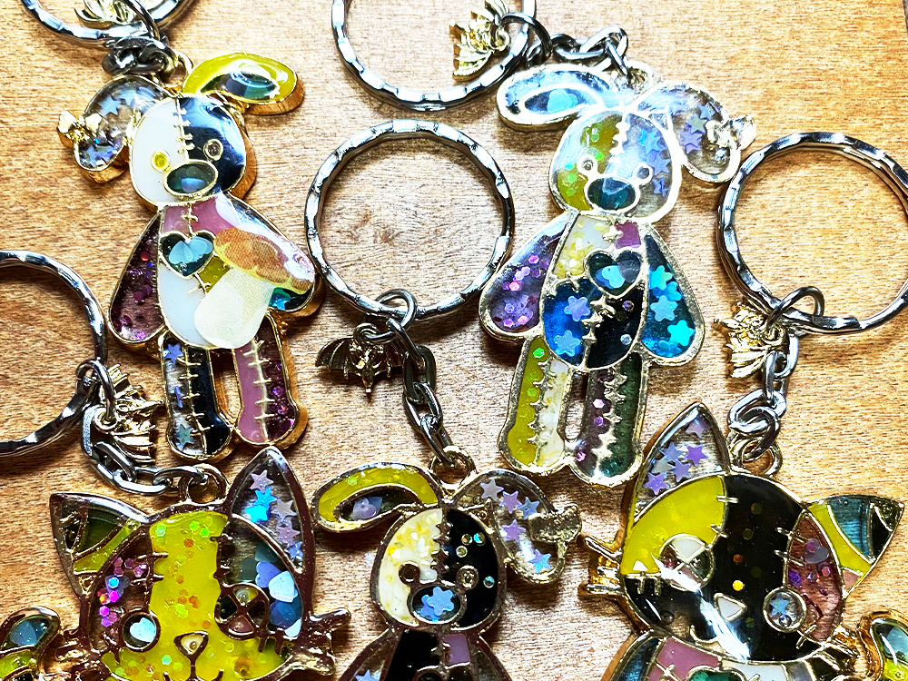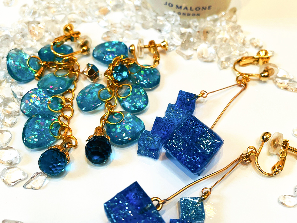 レジン・ビーズ・天然石などを使って、イヤリング・キーホルダー・ブックマーカー・髪留めといったアクセサリーを中心に制作・販売しています。
