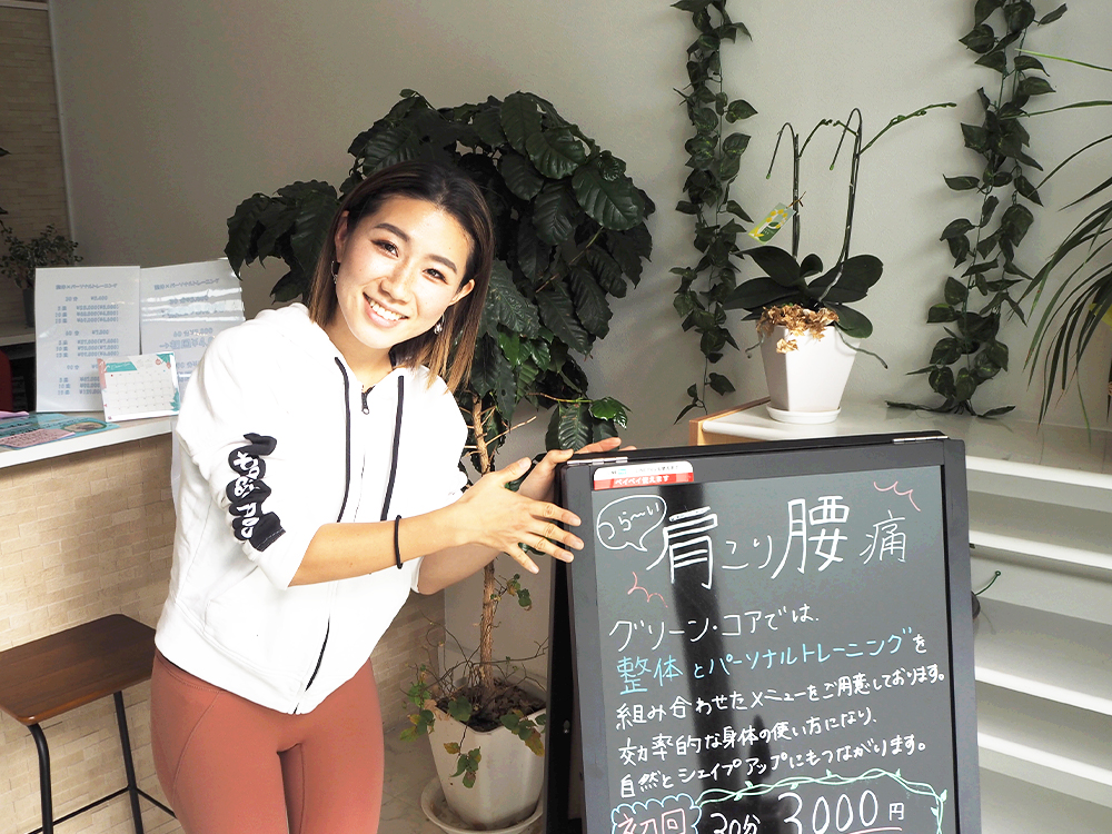 ★整体・パーソナルトレーニング<GreenCore>勤務 阿久田 真美さん 今回の“今頑張っている女性”は、阿久田 真美さんです。 産後の不調からお客さんとして…